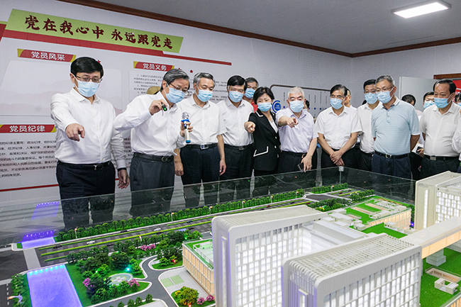 9月17日下午,省政协委员、市政协委员、党组书记黄巍东,全国政协委员、南通大学校长施卫东,省政协委员、市人民政府副市长赵闻斌就公共卫生体系与能力建设活动,带领40余名四级政协委员来到我院新院区进行实地调研。南通大学党委副书记、副校长、我院党委书记高建林,院长施炜,副院长鲁菊英参加调研。 高建林表示本次调研是我院建设以来规模最大、层次最高、影响力最广的一次。他代表通大附院3000多名员工对政协领导的到来表示诚挚的欢迎,对长期以来关心支持医院发展的各位领导表示衷心的感谢!同时在老院区提档升级,新院区如火如荼建设之际,恳请政协领导为我院的建设发展建言献策,多发声与呼吁。高建林从医院发展、新院区概况、发展诉求三个方面做了详细的介绍,并且重点介绍了平疫结合楼的相关情况。该楼由我院自筹资金建设,在满足平时使用需求的基础上,一旦有疫情发生,三天内可以快速改造成1000张床位的传染病病区,根据省卫健委的要求守好守住东大门,提升医院应对疫情的能力。 赵闻斌在发言中表示,通大附院是南通市历史最悠久、规模最大、医疗条件最好、科研实力最强的综合性医院。长期以来为南通的经济社会发展,为南通老百姓的身体健康做出了杰出的贡献。他代表市委市政府对以高建林书记、施炜院长为首的院领导班子以及全院广大的医务工作者表示衷心的感谢。他对于平疫结合楼的规划与设想表示高度的赞同与认可。同时要求我院结合国家关于集中收治场所的相关要求,与市卫健委进行更为深入的调研,确保该楼符合疫情集中收治场所的各项规定。对于我院在人才引进、新院区建设方面的诉求,市委市政府前期已做了一定的调研工作,后续将加大力度进行研究与商讨,与市财政一起尽最大努力去支持医院的发展。 最后,黄巍东提出三点期望:一、慎始如终抓好疫情防控。当前,新冠肺炎疫情仍在全球肆虐,国内疫情防控形势虽然总体平稳向好,但时有局部爆发。预防是最经济、最有效的健康策略,目前南通防范疫情反弹任务仍然艰巨繁重。我们要及时吸取外地疫情防控工作的经验教训,深刻反思公共卫生治理的短板、瓶颈和痛点,加快完善各方面体制机制,有序推进我市公共卫生体系和能力建设,不断提高应对突发重大公共卫生事件的能力和水平,巩固来之不易的防控成果。二、有效发挥政协委员主体作用。政协委员是政协组织的细胞,委员履职质效的好坏,决定着政协工作质量的高低。希望委员们能够紧扣全市公共卫生事业发展的大局,深入调查研究,积极建言献策,特别是要用好“有事好商量”协商议事平台,贴近群众、贴近实践,把调查研究做深、做细、做实,提出符合政策、切合实际的对策建议,供市委、市政府决策参考。同时,也要积极反映群众的意愿诉求,多做解疑释惑、凝聚共识的工作,切实为党委政府工作找到最大公约数,画出最大同心圆,汇聚最强正能量。三、协同推动公共卫生事业高质量发展。做好新形势下公共卫生事业,要始终把人民健康放在优先发展的战略地位,遵循其中蕴含的特殊性和规律性,协同推进公共卫生体系和能力建设发展。要坚持整体谋划、系统重塑、全面提升,织牢织密公共卫生防护网,打造疾病预防控制体系改革和公共卫生体系建设的“南通样板”。要夯实基层基础,着力解决城乡医疗卫生机构布局、“平战结合、医防协同”机制创新、医疗卫生人才队伍培养使用等突出问题。要提升监测预警水平,健全疾控机构与卫健部门、各医疗机构、城乡社区联动机制,更好发挥疾控机构对公共卫生的监测预警作用。要提高防控救治能力,强化医联体建设,促进优质医疗资源持续下沉,做优做强基层医疗卫生机构,加强院前急救体系建设,为维护人民群众健康提供有力保障。 与会领导还参观了新院区工地,详细了解了新院区的建设情况。 市委市政府相关处室、医院相关职能部门负责人参加了调研。 (供稿:基建处)