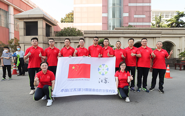 2020年,经过自愿报名、单位选拔和省卫健委考核等层层审核后,消化内科瞿利帅、妇产科杨晓清、普外科朱沙俊、泌尿外科李华镭、耳鼻咽喉科张启成、口腔外科徐克、医学影像科刘婷婷、眼科周天球、麻醉手术科陈红生、针灸科刘东华、饮食服务中心任金冬以及南通大学外国语学院宋建清这12名同志光荣的成为了第31期江苏省援外医疗队的队员。