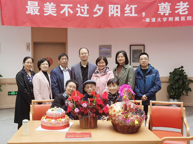 10月20日,财务与运营管理处、离退休工作办公室负责人,带着医院的祝福和关怀走访慰问了我院百岁老人申趾仁,为他庆祝百岁寿辰。大家与老人一起聊天重温在医院工作的日子,一起切蛋糕,其乐融融。 申趾仁老人于1922年10月出生,在我院从事财务工作40多年。申趾仁老人生活规律,心态好,原先与家人生活在一起,居家养老。今年开始,老人住进了养老机构,女儿为他请了专人陪护,时常探望。目前老人身体健康、思维清晰。孝亲敬老是中华民族的传统美德,也是全社会的共同责任。我院三大梦想之一的“康养梦”正是致力于积极探索适宜我院离退休职工的养老模式,让每一位离退休职工都老有所养、老有所依、老有所为、老有所乐。 重阳节期间医院对881位离退休职工进行了节日慰问。离退办对95岁以上及常住养老院的32位老人进行走访慰问,对39位90至95岁及长期生病的老同志进行了电话慰问,传达院领导的关心、医院大家庭的温暖,提升老同志的归属感、安全感、幸福感、获得感。 (供稿:朱晓菁)