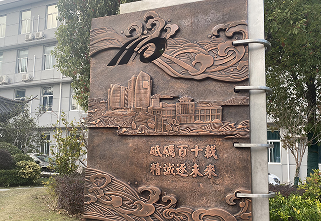 又 讯 值建院110周年之际,恰逢西院区改造,我院又设一座雕塑,铭记历史,激励当下,逐梦未来。该雕塑位于9号楼南侧花园,以紫铜锻造,整体为日历的造型。上书院庆主题“砥砺百十载 精诚逐未来”。主画面为医院不同历史时期的主要建筑,左上角镂空处为“110”,寓意医院走过110年的历程,定格在院庆日这一历史性的时刻,回顾过去,立足当下,展望未来。 (供稿:黄琳 倪歌)