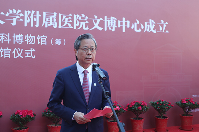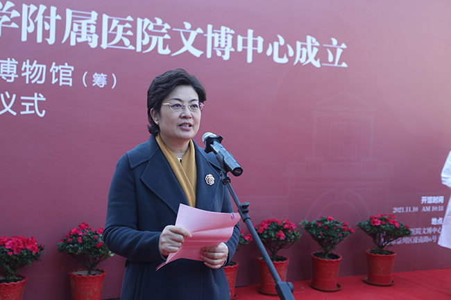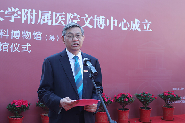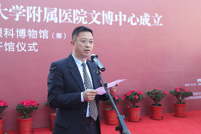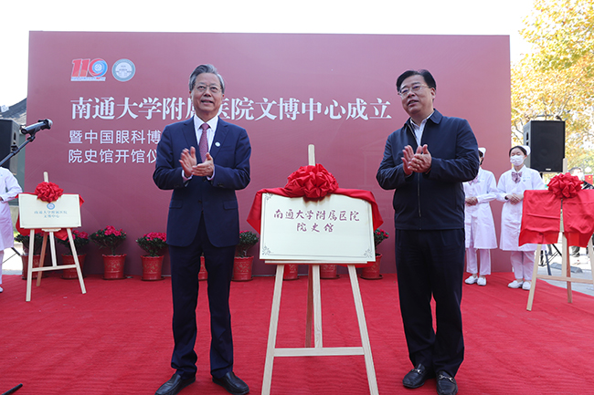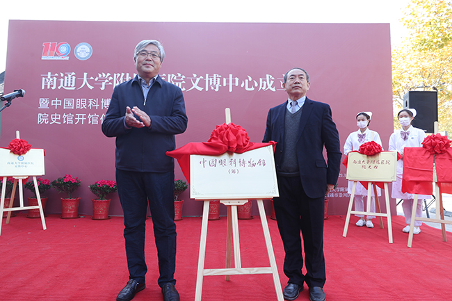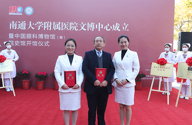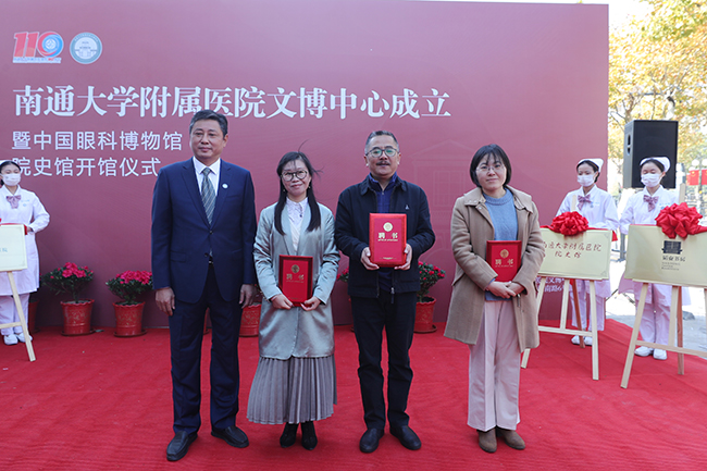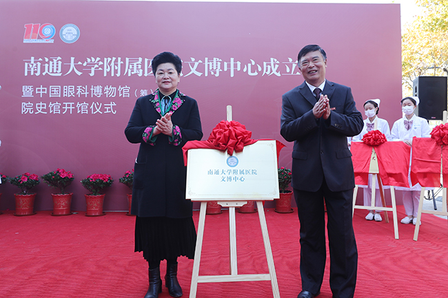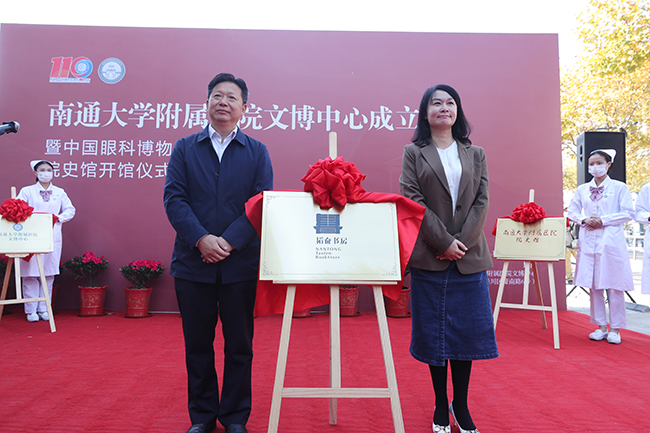 五山叠翠,秋水含章。11月10日上午,地处濠河边的我院文博中心正式成立。文博中心分设中国眼科博物馆(筹)、院史馆、韬奋书房职工活动中心等,将按照国有博物馆管理规范运行,对我院员工及市民开放,是一处充满历史厚重感和浓浓书香的城市客厅。 南通市人大常委会副主任、市总工会主席葛玉琴,南通市人民政府党组成员、副市长陈冬梅,南通大学党委书记浦玉忠、校长施卫东,南通大学党委副书记、副校长、附属医院党委书记高建林,江苏省人大常委、张謇先生曾孙张慎欣出席活动。活动由院党委副书记、院长施炜主持。 陈冬梅在讲话中指出,医院文博中心的成立、眼科博物馆、院史馆的开馆,既是对张謇精神的传承与弘扬,也是医院院史馆在专业化、规范化和普及化的道路上迈出的重要一步。希望通大附院充分发挥博物馆收藏、保护、展示历史文化资源的优势,构建博物馆文物数字化资源平台,成为培育传承弘扬优秀传统文化的重要阵地,为推动我市卫生健康事业高质量发展贡献新的更大的力量。 浦玉忠在讲话中强调,附属医院要充分发挥好文博中心的教育、展示和启迪作用,让老百姓更多地了解张謇和张詧先生创办南通医院的背景、过程和办医理念,让医务人员和医学生更直观地感悟学习先贤孜孜不倦的求索精神,继承发扬他们成大医以为民的远大志向。通过这面窗口,进一步扩大眼科学影响力,向全社会宣传通大和附院抢抓机遇、借势借力、加快推动高质量发展的丰厚成果。 张慎欣代表先贤后人,向文博中心的成立表示了热烈的祝贺。他表示院史馆、眼科博物馆的建设,正是对张謇“祈通中西 以宏慈善”思想和实践的继承、发扬和创新。 高建林在致辞中表示,文博中心的成立,可以更好地向社会各界展示医院百十年历史文化、展示眼科学专业发展进程;同时为职工、为市民提供读书、休憩、活动的场所,增强职工的使命感和荣誉感,提升职工的幸福感和归属感。以文博中心为载体,把医院丰厚而宝贵的精神财富传承下去,弘扬张謇办医精神,以更饱满的激情投身于为人民健康服务的伟大事业中去,是我辈通大附院人的使命。 活动中,施卫东和葛玉琴一起为南通大学附属医院文博中心揭牌。高建林和市委宣传部常务副部长蔡忠一起为医院院史馆揭牌。市文广旅局副局长倪益新和通大附院眼科主任管怀进教授一起为眼科博物馆揭牌。市新闻出版局专职副局长徐庆满和沿海集团副总经理袁一华一起为韬奋书房揭牌。院党委常务副书记马卫东向南通博物苑主任杜嘉乐、副主任彭春梅、南京大学文化与自然遗产研究院博物馆部主任翟森森颁发了文博中心专业顾问的聘书。文博中心主任倪歌向中国眼科博物馆(筹)馆长管怀进和院史馆馆长吴晓芳颁发了聘书。 南通市级机关及相关单位负责同志、张謇研究学者、南通书画家代表、捐赠人员代表、文博中心设计师以及全体院领导、干部职工代表等80余人共同见证了文博中心的成立。