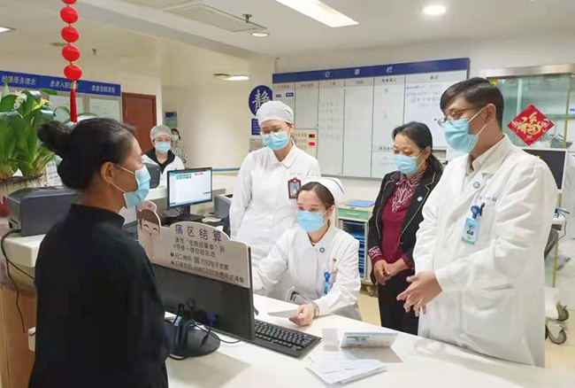 为进一步推进出院患者床边结算试点工作,减少患者来回奔波和排队等候,提升患者就医体验和满意度,院长施炜近日组织进行了床边结算试点工作专题行政查房。副院长兼总会计师景春平陪同查房。 施炜一行首先来到床边结算试点科室甲乳外科病区,护士站一名患者家属王女士正在为自己的婆婆办理出院结账,整个过程持续不到两分钟。对于这项便民服务王女士十分满意,她说:“与原来办出院需要跑上跑下花费整个小时相比,现在能在护士站进行床边结算方便多了,为医院的便民服务点赞!” 现在出院患者床边结算只要短短的一分多钟的便捷,背后是全院干部职工遵循为群众办实事理念的体现,是全院各部门通力配合的结果。为了实现床边结算,医生要改变自己的职业习惯,在前一天手术或门诊结束后,就要完成第二天出院患者的医嘱下达;护士要学会财务窗口的收费流程,为患者准确地完成出院结算;信息部门和后勤服务部门要在系统开发以及自助打印服务等方面做好配套工作。 施炜表示,百十年通大附院的发展,离不开江海百姓的信任与支持,全院上下要树牢以患者为中心的理念,开动脑筋、主动作为,在信息化时代,在智慧医院建设过程中,让信息多跑路,让患者少跑路,尽快将床边结算试点工作在全院开广,切实方便患者,提高患者就医体验和满意度。 财运处、医务部、护理部、药学部、绩效办、信息中心、医学装备处、后勤服务中心等部门负责人参加了行政查房。 (供稿:院长办公室)