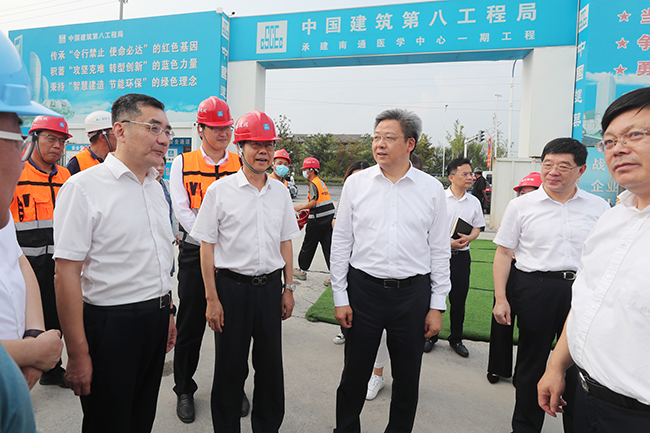 今年9月,市领导密集调研通大附院东院区,并就东院区的定位以及未来目标做出指示。市委副书记、代市长吴新明在视察通大附院东院区后表示,通大附院作为长三角北翼的省级综合类医疗中心,为守护南通及周边地区百姓的健康作出了巨大贡献。东院区建设是医院高质量发展的重要战略,更是江海百姓的健康福祉。市政协主席、党组书记黄巍东要求通大附院始终把人民健康放在优先发展的战略地位,遵循其中蕴含的特殊性和规律性,协同推进公共卫生体系和能力建设发展。市人大常委会常务副主任、党组副书记庄中秋则要求通大附院要始终把工程质量放在第一位,精心组织、精心施工、精心管理,确保把东院区建成精品工程、示范工程。