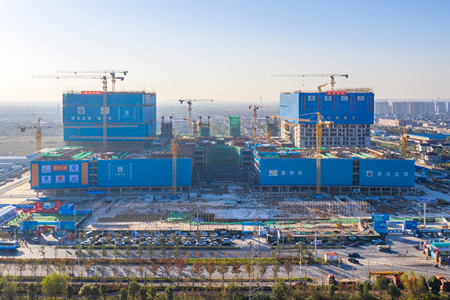 新院区建设,从梦想起步到尘埃落定,差不多用了八年多时间。2020年5月8日,肩负千万江海百姓健康重托、承载百余年通大附院人希望梦想的东院区终于奠基动工。这是一个暂时的句号,更是新征程的开始。“阴雨连绵时如何保证工期”“面对疫情怎样做到安全施工”“技术难关应该怎样克服”……通大附院管理团队与中创投等建设各方一起,多方沟通科学统筹,带领团队开展了一系列卓有成效的工作,使东院区一步一个脚印地朝着既定目标前进。如今的东院区施工工地上,几千名职工齐心工作、近百台大型机器日夜轰鸣,一派热火朝天的场面,而主体建筑的封顶,象征着东院区建设又进入了一个新的阶段。