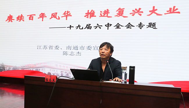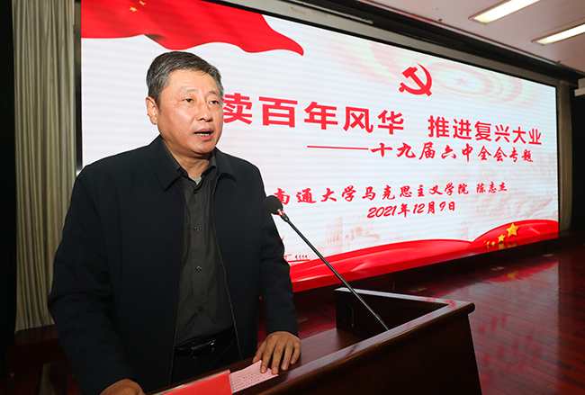 为深入学习领会党的十九届六中全会精神,准确把握全会精神实质和丰富内涵,12月9日下午,我院举行党的十九届六中全会精神宣讲报告会。南通市委宣讲团成员、南通大学陈志杰教授受邀作了题为《赓续百年风华 推进复兴大业——十九届六中全会专题》的报告。院党委常务副书记马卫东主持报告会。 陈志杰教授从深刻认识总结党的百年奋斗重大成就和历史经验的重大意义;深刻认识党的百年奋斗的初心使命和重大成就;深刻认识中国特色社会主义新时代的历史性成就和历史性变革;深刻认识党的百年奋斗的历史意义和历史经验;深刻认识以史为鉴、开创未来的重要要求;从党的百年奋斗历程中汲取智慧和力量等六个方面,深入阐释了十九届六中全会精神要义。他强调,最非凡的成功,不是超越别人,而是战胜自己;最可贵的坚持,不是久经磨难,而是永葆初心。在进取中突破,于挫折中奋起,从总结中提高,站在历史正确的一边,站在人类进步的一边——这是一个百年大党坚持胸怀,坚持开拓创新、坚持敢于斗争、坚持自我革命的不懈奋斗。 马卫东在总结时指出,陈志杰教授的报告主题鲜明、视野开阔、深入浅出,既有政治高度,又有理论深度,对与会人员深刻领会、准确把握、全面落实党的十九届六中全会精神具有重要的推动作用。马卫东强调,全院上下要提高政治站位,深入学习领会,坚决贯彻落实,学深悟透全会的重大意义和重要精神,大力弘扬伟大建党精神,坚持党对医院工作的全面领导,自觉从党的奋斗历史中获得启迪,从党的思想旗帜中找准方向,从党的精神品格中汲取力量,不忘初心、牢记使命,坚定信念、凝心聚力,砥砺前行、接续奋斗,以昂扬的精神、饱满的热情、务实的作风、优异的成绩,在新时代的“赶考路”上展现通大附院人的新担当、新作为、新气象、新成绩,推动医院各项事业高质量发展迈上新台阶。 党委理论学习中心组成员,各党总支(党工委)和党支部书记、支委委员,党务部门及群团组织负责同志等近200人参加报告会。 (供稿:党委办公室)