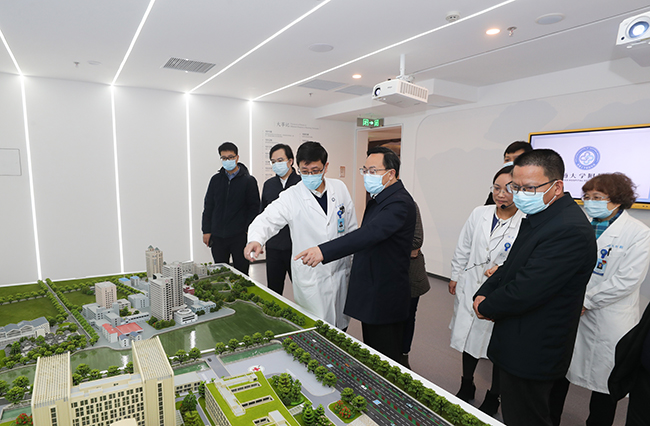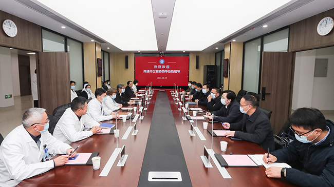 12月15日上午,南通市卫健委党组书记、主任张兵,党组成员、副主任沈俊涛,市中医药管理局副局长徐金华等一行来院调研。院党委书记高建林主持调研会。 高建林对张兵一行表示欢迎。他从医院概况、发展目标、新院区建设情况、建议诉求等方面进行了详细介绍。高建林指出,医院西院区提档升级正在加速推进,东院区基本建设如火如荼,希望市卫健委为我院建设发展多提宝贵意见、多给予帮助支持。 张兵高度肯定了医院建设发展取得的成绩,以及医院在新冠肺炎疫情防控工作中的担当作为,并就医院发展理念、规划和举措等内容进行了交流探讨。张兵在讲话中指出,通大附院作为南通医疗服务的领头雁,始终践行为千万江海百姓的健康与生命保驾护航、为千万江海百姓享受美好生活提供更高生命质量和更长生命周期的初心与使命。希望医院以东院区建设为契机,结合定位、对标一流,进一步加强学科(专科)建设和人才培养,打造具有全国影响力的名家、名科、名院,全面实现“三大梦想”,相信医院从110年的历史中汲取的丰厚滋养,将为南通卫生健康事业高质量发展贡献更大力量。市卫健委将在南通市委、市政府的领导下,全力以赴支持通大附院建设发展。 在院长施炜等陪同下,张兵一行还实地参观了医院生物样本库、文博中心和融媒体中心。 市卫健委办公室、规划信息处、体改处、医政处、科教处等相关负责人陪同调研。在院院领导、相关职能部门负责人参加调研会议。 (供稿:叶伊湉)