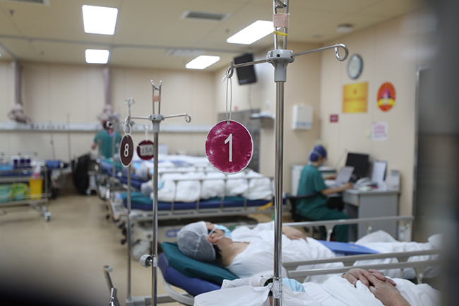 “自我加压,只为病人早点手术、早点康复” “滴、滴、滴……”伴随着心电监护仪的工作声,一台心脏搭桥的手术从8:30开始就在8号手术室实施。“老人家80岁了,春节前就心跳骤停过一次,我们为老人实施的是心脏不停跳的搭桥手术。”正在手术的通大附院心胸外科主任尤庆生教授说。据他介绍,这名老人三支冠脉堵塞程度达85%以上,并患有高血压、糖尿病,如果按常规的传统体外循环下心脏停跳的手术方法可能导致术后多种并发症发生。经过三个多小时的紧张手术,尤庆生团队顺利为老人搭建了四根血管。 “其实从2月7日到今天,我们诊疗组就实施了5台心脏大血管手术,都是难度大、风险高的四级手术。”尤庆生介绍。 据通大附院麻醉手术科科护士长朱琴介绍,从2月7日开始中心手术室就迎来虎年的手术高峰,每天的手术均在200台左右,而且超过40%的是四级手术。“面对医疗高峰,我们只有铆足了劲,在确保安全的前提下满负荷工作,只有我们自我加压,病人才能早一点手术,早一点康复。” 在中心手术室,忙碌的还有达芬奇手术机器人,“说起达芬奇机器人手术,很多患者已经不陌生了,这是代表着世界顶级水平的微创手术平台,综合了开放手术以及传统腔镜手术的优点。”当天上午,机器人的三根机器臂在泌尿外科主任马利民教授的操控下,正为病人实施肾癌切除术。“根据全国2021年达芬奇机器人手术统计,我们医院达芬奇机器人手术量位列第32名,单机手术量第24名,而我们科室的手术量位列全国前50。”马利民说。
