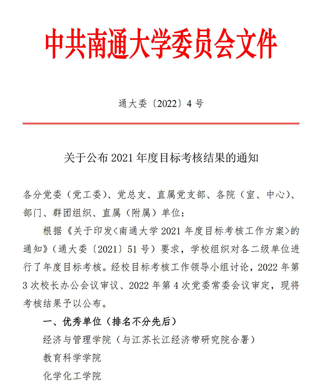 | 我院连续三年荣获南通大学年度目标考核优秀单位 |