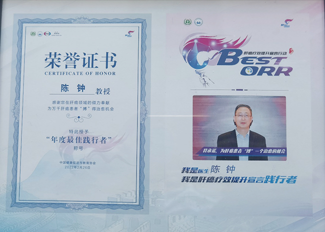 | 陈钟教授荣获肝癌疗效提升“年度最佳践行者”称号 |