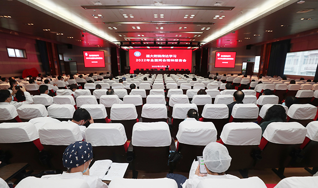 3月25日,我院召开传达学习2022年全国两会精神报告会。全国人大代表、骨科主任刘璠教授作专题报告,传达十三届全国人大五次会议和全国政协十三届五次会议精神。院党委副书记、院长施炜主持会议。 今年全国两会是在我国进入全面建设社会主义现代化国家、向第二个百年奋斗目标进军新征程的重要时刻召开的重要会议。两会的胜利召开,为推动党和国家事业发展、不断夺取新时代中国特色社会主义新胜利,笃定了前行方向、凝聚了广泛共识、注入了强大力量。报告会上,刘璠详细介绍了大会盛况,着重解读了政府工作报告,畅谈了参会的所见所闻。他表示,会议以习近平新时代中国特色社会主义思想为指导,全面贯彻中共十九大和十九届历次全会精神,深入贯彻落实中央政协工作会议精神,坚持大团结大联合,践行全过程人民民主理念,围绕中共二十大召开广泛凝心聚力,聚焦党和国家中心工作深入协商议政,是一次高举旗帜、民主团结、求真务实、简约高效的大会。参会期间,刘璠积极参政议政,认真履职,围绕教育、科技、民生、医疗卫生等热点问题建言献策,受到了多家主流媒体广泛关注。 施炜表示,报告主题鲜明、全面系统、内涵丰富,具有很强的针对性和实效性,对全院上下全面准确把握全国两会精神具有提纲挈领的作用。他要求全院干部职工要提高政治站位,做到学深悟透、学用结合、学有所成,瞄准今年重点工作和重要目标,强化实干担当,把一项一项的任务落实好,把医院的事业不断向前推进,以优异的成绩迎接中国共产党的二十大胜利召开。 全体党委理论学习中心组成员、中层管理干部、临床首席专家、督查督办专员、主任(处长)助理等共300余人参加会议。 (供稿:党委宣传部)