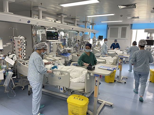 昨天夜里,通城按下了暂停键。早晨,医院毗邻的大街没有了往日的熙攘,大家都自觉遵守着静默管理,因为今天的暂停只是为了明天更好的生活。 暂停键按下的是城市快节奏,但在通大附院,医护人员救死扶伤的坚守并未暂停,守卫生命、护佑健康的职责与担当没有暂停。每天3位院领导、35名职能部门人员、150名医生、360名护理人员坚守医院。我们将从今日起陆续探访这一特殊时期医院的特殊科室,感知疫情下通大附院人一如既往初心为民、仁心铸魂的精神。 今日,让我们探访第一站急诊监护病房(EICU)。 4月7日早晨7:45,EICU的医生护士准时围站在护士站旁,对病房里16名患者的病情进行交班。主任医师沈雁波、袁鼎山因为前天夜里用ECMO(体外膜肺氧合)抢救一名患者而几乎彻夜未眠。交班后,各治疗组分别查房,匆忙的脚步、专注的眼神、精准的操作,伴随着监护仪工作的声音,EICU就在一切忙而不乱的节奏中开启了新的一天。 “沈主任,抢救室一患者需要上ECMO(体外膜肺氧合)!”4月6日晚7点左右,24小时值守医院的沈雁波接到抢救室的电话,“这个电话就像一个按键,一键启动了ECMO治疗的绿色抢救通道。”沈雁波这样形容地说。10分钟后,本不值守医院的主任医师袁鼎山背着包赶到了抢救室,作为急诊医学科ECMO治疗小组组长他说,“这个时候病人上了ECMO就意味着夜里我回不了家,必须要守在旁边,所以就连换洗衣物一起带过来。”袁鼎山说。 这是一位50岁的男子,因为高血压、冠心病在外院住院一周,经过冠状动脉造影检查发现,该患者的三支冠脉狭窄度超过了90%,于是立即转到我院进行心脏搭桥手术。然而刚到医院不久,患者病情突然发生变化,急性左心衰导致呼吸困难,意识丧失,抢救室医护人员立即进行心肺复苏、气管插管,随即向沈雁波汇报,需要ECMO治疗。随后在ECMO团队成员的协作下,患者装上了ECMO后被紧急转至急诊监护病房进一步抢救。 这是发生在急诊的一幕,“其实,这种事关生死的抢救每天都在这里上演,特别是在疫情防控形势下,好多的急危重症救治患者都转至我院,这既是对我院救治能力的信任,更是一种考验。”急诊科主任黄中伟说。 我院EICU一共有20张床位,8名医生,40名护士,就跟医院其他科室主任一样,黄中伟从清明假期开始就主动24小时值守医院。就在7日当天,病房里16名患者多为严重多发伤、重症胰腺炎、重症肺部感染等,病情急、危、重,因此包括呼吸机、连续肾脏替代治疗(CRRT)、ECMO等脏器支持在内的治疗几乎是常规必备。 13床是一位20岁的小伙子,因为严重的糖尿病而引发酮症酸中毒,半个多月前由外院转至我院时已经神志不清,呼吸急促,期间还发生了心脏骤停,经过心肺复苏、气管插管后才挽救了生命。小伙子由于长期不运动,体重达360斤,加上全身的经口气管插管、PICC导管、动脉导管、CVC导管、膀胱温监测导尿管等,每次翻身都需要七八个人才能完成。虽然翻身不容易,但是小伙子住院期间全身没有一处出现压伤。 护士长吉云兰介绍,因此除了值班的医生以外,有2名医生、8名护士24小时值守医院。40名护士中,有4人派出支援上海、院内支援过渡病房,这对监护病房工作任务重、压力大的护理来说可谓捉襟见肘。当医院发出号召要求医护人员24小时值守医院后,护理队伍没有一人有怨言,年资高的护士主动请缨,都表示自己的孩子已经在外地上大学,没有后顾之忧,而年轻的护士则说自己身体扛得住,经得起高强度的工作。这让吉云兰非常感动。目前,除了8人24小时值守医院以外,白天上班的护士作为大夜班的备班,小夜班的护士作为白班的备班,夜班的护士都下班不回家集体睡在医院,这样保证有充足的人力应对突发情况。 就在4月6日晚为患者进行ECMO抢救治疗时,值守医院没有排班的高年资护士责任组长朱琴、ECMO物资负责人黄跃飞得知消息后立即到抢救室帮班。朱琴在准备好物资后,协助医生进行穿刺等操作,随即又一起将病人转运至EICU,在安顿好病人后已经过了12点,他们才发现朱琴的嗓子已经有些哑了,她和黄跃飞靠在值班床上就睡着了。 与医院外寂静的大街相比,EICU里的忙碌完全是另一个世界,在这个两百多平米的空间里,在这扇门后,没有暂停、没有静默,有的只是一次次紧急的抢救、一轮轮精细的护理,这是急诊人的真实写照,也是附院人为通城作出的强有力的坚守。 (供稿:邵勇林)