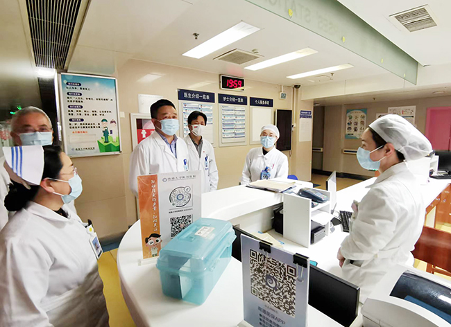 4月9日晚,院党委副书记、院长施炜,党委常务副书记马卫东,副院长马强、顾志峰、赵建美、鲁菊英、陆玉华分别率队开展疫情防控行政夜查房,慰问坚守岗位的干部职工,检查各科室部门疫情防控相关政策与措施的落实和执行情况及人员在岗情况等。 院领导率队分四组到2号楼、3号楼、4号楼、5号楼、6号楼、9号楼、12号楼、19号楼、21号楼、急诊医学中心、儿童医学中心、分子检测中心、配电间、食堂等科室部门,了解人员在岗、自我防护等情况。每到一处,院领导对特殊时期坚守岗位的职工表示慰问。院领导表示,眼下南通疫情防控形势严峻复杂且日趋凶险,作为三大战场的“院区保卫战”是重中之重,任务很多、要求很高、困难重重、压力山大。全院上下要进一步增强责任心和执行力,严格落实好各项防控措施,层层守住院区大门、楼宇门关、病区门关三道关卡。全院职工在疫情防控的紧急状态下非常辛苦、非常疲劳,精神也高度紧张,院领导叮嘱大家不仅要强化自我防护,而且要尽可能地多休息,保证营养,保重身体,相关部门要做好后勤保障工作。针对查房中发现的一些漏洞和薄弱环节现场立行立改,确保政策不打折扣地落实到位。 相关职能部门负责人参加了行政夜查房。
