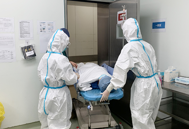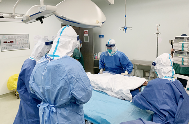 目前南通疫情防控形势严峻复杂,我院一直处于应急性战时状态。麻醉手术科随时可能接诊新冠疑似、密接甚至是确诊病例,定期进行疫情防控知识培训,组织针对不同突发情况的应急演练尤为重要。 3月29日早晨7:00,随着一阵急促的电话铃声,六号楼中心手术室15号负压手术间开始了应急演练。手术室护士长黄培培接到急诊电话后进行了紧急布置人员分工及工作要求。演练模拟急诊室一位患者脑外伤核酸结果未出,但是病情严重需立即行颅内血肿清除术。手术室立即启动新冠肺炎疑似患者应急预案,将15号手术间切换为负压,电动门切换为手动控制,手术间前后贴上特殊手术标识,移除手术间内所有非必要的仪器设备。巡回护士与器械护士备齐手术所需的全部用品,麻醉护士准备药品并连接好麻醉机管路,各类人员做好三级防护。一切准备就绪后病人从专用通道抵达手术间,移至手术床上,手术正式开始。 整个演练时长45分钟,从该类患者的处置流程、术前环境准备、转运交接病人、三级防护物品的穿戴、手术过程中隔离技术的落实、术后脱防护物品、器械与敷料的密封处理以及手术室的终末处理等环节都进行了演练,并有专人现场解说。现场总指挥、麻醉手术科主任黄新冲和科护士长朱琴分别对演练过程进行了点评,提出了今后工作中需要改进提高的细节。 为了保证演练的质量,演练前邀请感染办公室进行了指导。此次演练还通过腾讯会议平台在二楼手术示教室进行了演练的现场直播,并将演练视频制成了新冠肺炎疑似或确诊患者手速流程的标准化视频供全科人员学习,进一步巩固演练的成果。 (供稿:麻醉手术科)