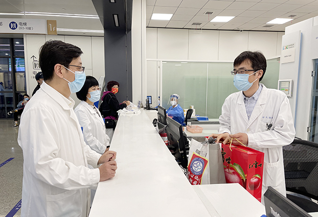 近日,院领导高建林、施炜、马卫东、马强、赵建美、周晓宇等带领各职能部门负责人,分别慰问了援上海临港方舱医院、援上海核酸采集队、援上海核酸检测队、分子检测中心等部分抗疫队员的家属。慰问中,院领导详细询问了队员子女在家上网课的情况、家中老人的身体状况和家中婴幼儿照护情况,表达了院部对抗疫人员及其家属的慰问与关心。4月份以来,我院职工奋战在抗疫一线的各个岗位,更有医务人员化身“大白”5530人次,身穿防护服在烈日下暴晒、在寒风下淋雨,坚守在采集核酸和检测的岗位。各职能部门也各司其职、千方百计为一线人员解决了后顾之忧。 为了进一步鼓舞士气、提高抗疫一线人员战斗力,工会联合团委,在后勤服务保障中心的协助下,对闭环管理及援外抗疫一线人员进行生活上的关心,为队员配备相关药品、暖宝宝,根据天气变化,结合队员需求,及时配送衣物,为队员开展工作提供有力保障。定期送去的水果、牛奶、热乎乎的蛋挞,为援沪队员子女送上的生日蛋糕等,让一线的抗疫人员倍感亲切与温暖。生病住院的员工也及时得到了组织的关心与慰问,感受到了通大附院大家庭的温暖。同时注重关爱职工心理健康,开展全员心理健康测试,提供24小时心理咨询服务热线,通过微信群关注一线人员思想动态,及时电话联系予以疏导等多项措施确保了抗疫队伍的稳定与和谐。 我院抗疫队伍也同时收到了来自政府部门的关心。共青团南通市委精心打造“联心联情服务卡”,向援沪方舱医疗队致敬,服务卡内容丰富,包括号召学校关爱队员子女、代取快递代购菜品等跑腿服务、提供爱心出行服务等,协助医疗队员解决家中困难,免除后顾之忧。 (供稿:工会 团委)