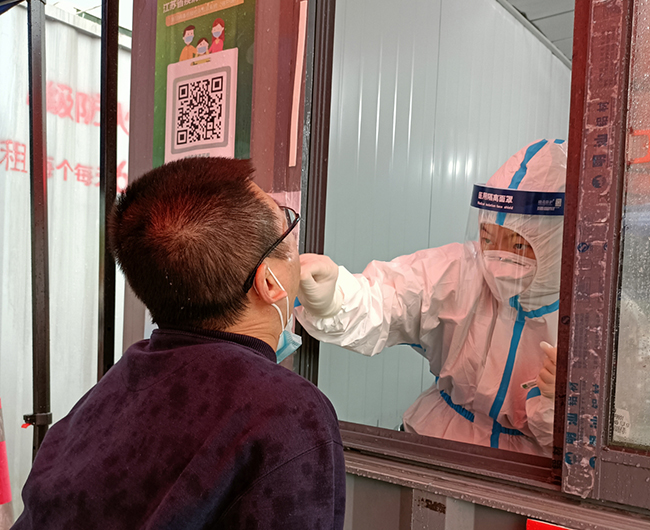 冲锋“疫”线 通大附院人使命必达 “来嘴巴张大,放松……”志愿者们每天需要重复几百次同样的话语,重复几百次繁琐又机械的动作,几个小时下来,嗓音沙哑、胳膊酸痛、小腿肿胀是常态。这次的工作时间紧、任务重、要求高,志愿者们需要对每位来通人员进行单管双采,平均单日核酸及抗原采样可达近两千份,一个班次两位核酸采样的同志手卫生高达近千下,每当执勤结束,脱下防疫六件套时,看着他们脸庞深深的勒痕,甚至还会出现压力性皮肤损伤,都能看出这8小时,他们的坚守,没有一丝松懈。 卡口核酸采样点是临时搭建的集装箱,条件艰苦,每次货车经过整个集装箱都在抖动,持续不断的噪音吵得人内心烦躁不安。即便他们每天都穿着密不透风的防护服,白天闷热呼吸不畅;夜晚湿冷雾气难散,他们仍然伫立岗位,恪尽职守,不敢有一分的松懈!眼里常含泪水不是因为感动得落泪,是汗水浸润了我的双眼;嗓子沙哑不是因为没有及时喝水,是忙碌的双手已经无暇顾及。 他们经常顾不上休息,只有在采样间隙动动身体,使僵硬的身体稍有缓解。冷了,原地跺脚;累了,手持扶腰;麻了,换个姿势继续采样……顾不上早已酸痛的手指和手臂,登记、双采、做抗原,除维持现场秩序外,志愿者们还需要耐心指导司机出示采样码,并做好司机师傅的情绪安抚工作……而这一切不仅是对志愿者体力和耐力的考验,更是对他们忠诚和担当的检验。