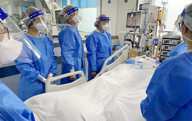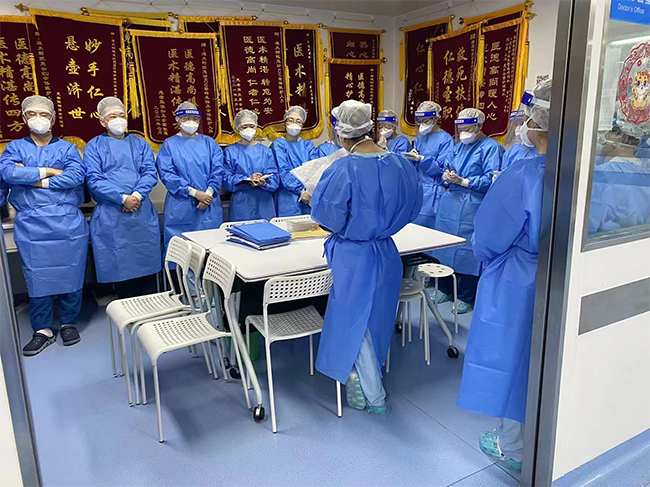 “疫”路坚守,“疫”路前行 确保疫情防控下江海百姓的就医需求,我院成立了多个缓冲病区。急诊监护病房医护团队改编为缓冲第九病区,收治重症患者。跨科收治各种急危重症患者,护理人力资源紧缺,给急诊监护病房护理团队带来极大的挑战,面对困难和挑战,急诊科副主任沈雁波和护士长吉云兰毫不迟疑,立即分工部署。接到通知的短短几个小时内,缓冲九病区正式开张。 “xx床收病人,准备有创呼吸机、推注泵、输液泵、监护仪,病人现在就送!”这是急诊监护病区自转变为缓冲病区来最常接到的电话。由于种种原因,我院急诊就诊人数骤增,其中重症患者所占比例高,这就意味着现有护理工作量大幅度增加。加之缓冲病房防护要求为二级防护,防护面屏、N95口罩、隔离衣、鞋套等防护用品的穿戴,增加了护理人员操作的难度。半天下来,护士们的洗手服早已湿了又干,干了又湿。 对于急诊监护病区医护人员来说,改编为缓冲九病区以来真正经受的第一场考验,是四个小时连续开展两例ECMO技术。4月15日下午,急诊抢救室先后收治了两名从外院转入的重症病人。57岁的齐先生因车祸颅脑外伤昏迷一周,送到时已有严重的脓毒症,心脏功能越来越差,虽然经过紧急的抢救措施,心脏的搏动依旧很弱,血压持续下降,情况危急。急诊监护病房ECMO团队跟家属沟通后,决定立即启用ECMO治疗。 经过动静脉置管、ECMO机器预冲等紧急抢救治疗,一小时后ECMO成功上机。正当大家准备喘口气的时候,抢救室另一名患者蔡女士的病情突然恶化。60岁的蔡女士因重症肺炎在当地医院治疗已有一周,然而病情并未好转,出现严重的呼吸衰竭,转至我院时已严重休克,氧合指数仅有50mmHg,而正常人的指标在300mmHg以上,血压也降到65/40mmHg左右。 医护人员紧急实施抢救措施效果甚微,患者面临随时死亡的危险,唯有ECMO技术才有获救的希望。病情不容耽搁,ECMO团队成员来不及喘口气,立即为患者实施ECMO。短短一个多小时后,成功为蔡女士实施ECMO治疗。短短几天时间内,在医护人员精心治疗和护理下,蔡女士已成功脱离ECMO。 短短两天,连续收治两名主动脉夹层术后急危重症患者,这是急诊监护病区改编为缓冲九病区以来经受的第二场考验。4月20日凌晨三点钟,一直忙碌中的护士接到电话,“主动脉夹层的病人手术好了,30分钟送到病区”。这是一个A型主动脉夹层的病人,急诊手术后转入监护病房。 主动脉夹层术是专科性极强的大手术,术后护理要求极高。转入时,病人全身皮肤湿冷,带有气管插管、两根动脉置管、心包纵隔引流管、两根心包引流管等多根管道。监测、止血、扩容、强心、纠正电解质紊乱等抢救措施在夜间责任组长丛玲的指挥下有条不紊的实施。为保证引流管在位通畅,需每半个小时挤捏一次引流管。“感觉自己转个身的功夫,就要去挤捏引流管了。”护士周红笑着说。经过积极救治,病人生命体征趋于平稳。 当大家准备松口气时, 4月22日晚上10点,再次接到急诊抢救室电话,56岁的黄先生急性胸痛,继而出现晕厥,急诊CT示主动脉弓及升主动脉壁间血肿,紧急手术后再次转入监护病房。转入时病人呈休克状态,肌钙蛋白危急值一度爆表达7.02μg/L,输血、止血、升压等各种抢救措施井然有序地进行着,本该0点30分下班的夜班责任护士夏海燕主动加班至凌晨3点30分,直至病人生命体征平稳后才放心离开。 在这场与病毒抗击的战斗中,急诊监护病房护理团队不是一个团队的战斗,得到护理部和兄弟科室的大力支持。“没有一个冬天不会过去,没有一天春天不会到来”,急诊监护病房护理团队坚信,病毒无情,人间有爱,同舟共济,“疫”路坚守,“疫”路前行,终将取得胜利!