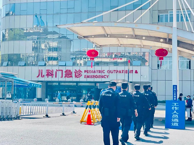 随着疫情形势的严峻,保卫医院的压力骤增。为了方便工作,院领导、职能部门人员、临床医护人员主动留守医院不回家,最多时近3000人坚守医院。在医院门急诊的预检分诊处,安保人员严格查看每一位进入医院患者及家属的健康码、行程码及核酸检测阴性证明,面对有些患者的抱怨,他们默默承受。