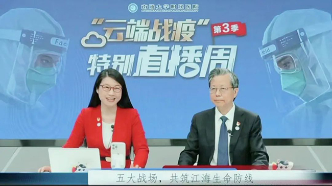 5月9日上午10点,在通大附院融媒体中心,高建林做客该院第三季“云端战疫”特别直播周,向全网介绍医院疫情防控、医疗服务的最新情况,仅医院视频号就有2万多网友在线观看。此前,包括医院领导、临床首席专家、科室主任在内的近30名专家做客“云端战疫”特别直播周,他们携手在云端打响了疫情防控的“云端阵地战”。