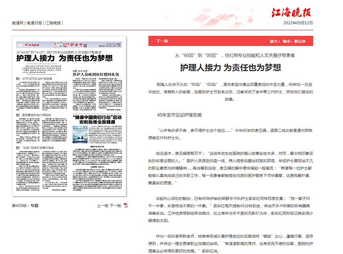 | 江海晚报:护理人接力,为责任也为梦想 |