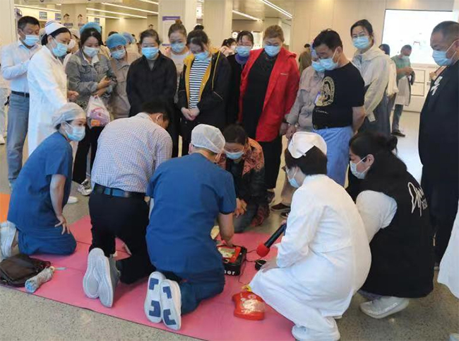 为积极响应中华护理学会“科普促健康,携手向未来——安全护航,健康生活”全国科普活动,助推全民科学素质全面提升,提高全民应急急救技能,5月24日上午,我院急诊护理团队在门诊楼一楼大厅开展急救技能科普宣传活动,内容涵盖成人及儿童心肺复苏、自动体外除颤仪的使用、气道异物清除、外伤止血包扎等。 急诊科主管护师姜慧和袁明军对成人心肺复苏和自动体外除颤仪进行了授课示范,并强调心脏骤停后“黄金4分钟”的施救意义;儿童急救中心主管护师左伟华和黄蓓蓓讲解并演示了儿童心肺复苏急救技能;急诊科医师刘佳佳运用通俗易懂的语言并结合现场操作演示的方式,详细讲解了外伤如何紧急止血、包扎,同时为现场群众演示了八字包扎法、螺旋包扎法和头帽包扎法。活动现场还安排了几位志愿者作为患者,接受现场包扎,并配合讲解,使参与者能够快速掌握,独立完成操作。 此次活动安排在门诊进行,针对性更强,不但解答了许多市民的疑惑,同时也强化了市民的急救理念和急救能力。丰富的内容获得了大家热烈欢迎和赞扬,大家对急诊医护专家在繁忙的工作之余,对群众进行专业规范的指导表示由衷的感谢。 (供稿:徐晓演 顾玉慧)