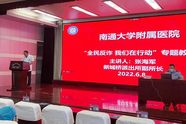 为进一步提高全院职工识骗防骗的能力,6月8日,我院举办“全民反诈 我们在行动”专题教育讲座。 此次讲座由崇川区新城桥派出所副所长张海军主讲,他着重介绍了八大类常见的电信网络诈骗类型,揭批了诈骗犯罪手法,解析了典型案例,同时进行了防诈提示,让全院职工学到实用的防骗技巧,提升了对诈骗行为的应对能力。 在院院领导、专员、临床首席专家、中层管理干部、督查督办专员、主任助理、临床诊疗组组长、机关工作人员、紧密型医联体单位主要负责人、相关职能部门负责人及第三方人员等一千余人现场或线上听取了讲座。 (供稿:安全保卫处)