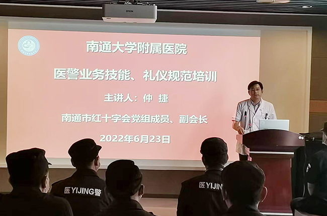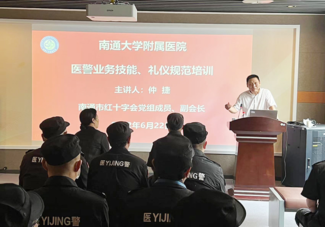 为提升我院医警业务水平与人文素养,安全保卫处联合工会于近日开展了医警业务技能与礼仪规范培训,邀请南通市红十字会党组成员、副会长仲捷来院授课。副院长周晓宇出席培训。 周晓宇在动员讲话中表示,医警是医院重要的形象窗口,服务技能与患者满意度、服务品质声誉息息相关。作为通大附院大家庭的一员,医警要牢固树立主人翁意识,在医院门关管理、秩序维护、消防安全、治安处置等各项工作中,既要坚持底线原则,又要做到良好沟通应对,规范服务、温馨服务、高效服务,进一步改善患者就医体验,提升患者满意度。 仲捷结合自身23年从警经历,从保安工作概述、医院保安的日常工作、医院保安工作的重点、一般突发事件的应急处理等四方面,理论结合实践进行了详细阐述,并应用大量真实案例详细讲解了处置规范和技巧,对医警日常工作有很强的指导意义。 安全保卫处、院工会负责人及全体医警参加了此次培训。 (供稿:安全保卫处)