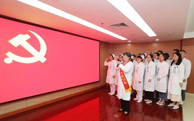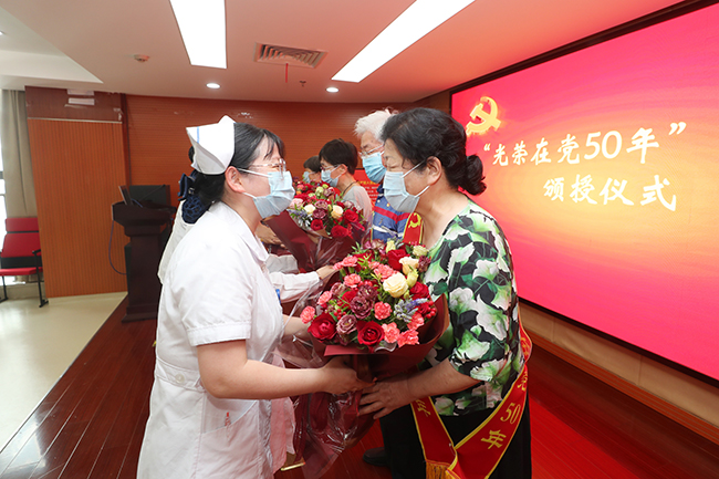 重温党的光辉历程,讴歌党的丰功伟绩,共话入党初心使命。7月1日下午,在庆祝中国共产党成立101周年的喜庆日子里,我院召开感党恩、跟党走——跨越半个世纪的初心对话暨庆祝中国共产党成立101周年座谈会。院党委书记高建林,党委副书记、院长施炜,党委常务副书记马卫东,党委副书记、纪委书记邢晓源出席座谈会。会议由马卫东主持。 高建林在座谈会上讲话,他首先代表院党委向全院共产党员致以节日的祝贺,向获得光荣在党50年纪念章的老前辈、老党员致以崇高的敬意,对又一批新鲜血液加入党组织表示热烈欢迎。 高建林表示,伟大的中国共产党历经101载风雨洗礼,一代又一代中国共产党人,以力挽狂澜的担当和气魄,建立了彪炳史册的不朽功勋,创造了一个又一个的“中国奇迹”。特别是党的十八大以来,以习近平同志为核心的党中央引领中华民族迈向伟大复兴,开启了中国特色社会主义新时代的新征程。我院党委坚持以习近平新时代中国特色社会主义思想和党的十九大和十九届历次全会精神为指导,贯彻落实全面从严治党要求,始终坚持以党建创新引领医院事业高质量发展,医疗服务水平不断提高、运行效率效益稳步提升、学科建设更上层楼、硬件建设再上台阶、员工精神面貌焕然一新、党建工作成效显著,这些成绩凝聚了全院广大党员、干部和全体医务员工的奉献和智慧,尤其离不开拥有一千四百余名成员的党员队伍。 高建林在讲话中向全院共产党员及全院干部职工提出三点要求: 一是坚定理想信念,争当忠诚干净担当的人民健康卫士。作为一名医务工作者,只有坚持宗旨意识,才能始终做到全心全意为人民健康服务。全心全意为人民服务是中国共产党的根本宗旨,全心全意为人民健康服务是我们使命所系。只有坚定理想信念,坚守信仰本真,坚定为医之道,站稳人民立场,才能始终做到把人民放在心中最高位置,真心对群众负责,热心为群众服务,解决群众难题,增进人民福祉,才能把我们个人的人生理想和事业发展融入国家富强、民族振兴、人民幸福的伟业之中,当好人民卫生健康的忠实卫士。 二是坚守初心使命,切实增强为民服务与干事创业本领。作为一名通大附院人,111年来我们一直流淌着中华民族的血脉。张謇先生“成大医 以为民”的办院宗旨,始终是全体附院人的价值追求。我们要牢记通大附院人“为千万江海百姓的生命与健康保驾护航”的初心,践行“为千万江海百姓享受美好生活提供更高生命质量和更长生命周期”的使命,发扬张謇先生“八大”办医精神,厚植医院“六心”核心文化,提升技术水平,永攀医学高峰,精业不倦,福泽百姓。 三是坚持守正创新,奋力谱写医院事业高质量发展新篇章。在医院高质量发展的征程上,我们全体附院人、特别是年轻一代,要秉承先辈们爱党爱国爱院情怀,赓续传承优良传统,拿出破釜沉舟的胆气、敢于创新的勇气、攻坚克难的锐气、蓬勃向上的朝气,抢抓机遇、直面挑战,强化责任、主动应对,统一认识、形成合力。我们还要进一步提振改革的信心和胆识,拿出不畏艰难、砥砺前行的智慧与魄力,在学科建设、人才培养、科技创新、内部管理等方面出实招、下狠招、放大招,并将每一个人的价值追求融入医院奋斗目标,建设一个利益共同体、责任共同体、命运共同体,不断增强组织的凝聚力、感召力。 高建林号召全院上下要更加紧密团结在以习近平同志为核心的党中央周围,坚定理想信念、坚守初心使命、坚持守正创新,奋楫争先、实干笃行,坚实走好通大附院圆梦之路,以优异的成绩庆祝中国共产党成立101周年生日、以优异的成绩迎接党的二十大胜利召开! 会上举行了“光荣在党50年”纪念章颁授仪式,王无锡、张允惠、朱菊花、姚淑萍、朱轶琴等5位老党员获得此项荣誉,高建林、施炜、马卫东、邢晓源为他们颁授纪念章,新党员代表向他们献上鲜花。 在新党员入党宣誓暨党员重温入党誓词仪式上,由老党员代表姚淑萍领誓,今年新入党的党员与其他党员一起面向党旗站立,庄严宣誓。 在感党恩、跟党走——“跨越半个世纪的初心对话”中,姚淑萍、王无锡、张允惠、朱轶琴4位老党员,季敏、孙春锋、姚尤梅3位新党员代表依次发言。4位老党员从时代背景出发、从自身经历出发,畅谈中国共产党的光辉历程和自身的成长感悟,让大家充分感受到了今日幸福生活的来之不易和老一辈党员身上的对党忠诚、无私奉献精神。3位新党员代表有感而发,跟大家分享了自己的入党初心,展示了为党的事业努力奋斗的决心和信心。这场党龄相差50年的新老党员对话,是一次跨越半个世纪的嘱托与表白,更是在恰逢新百年新征程路上对红色信仰的传承与弘扬,为所有参会人员上了一堂精彩的党课,让大家都受到了一次心灵的洗礼。 光荣在党50年纪念章获得者,2022年新发展党员,党委职能部门主要负责人,各党总支、党支部书记,以及入党积极分子代表等参加了座谈会。 (文、图/邵勇林)