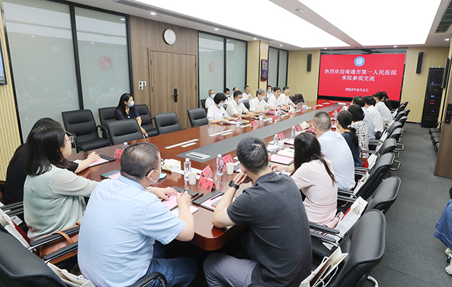 8月2日,上海仁济医院副院长、南通市第一人民医院院长张继东,党委副书记、常务副院长储晓彬,党委专职副书记丁爱明,总会计师孙艺梅等一行15人来我院参观交流。 南通大学党委副书记、副校长、我院党委书记高建林,党委副书记、院长施炜,党委常务副书记马卫东,党委委员、副院长马强,副院长赵建美出席交流会。 交流会上,高建林对南通市第一人民医院代表团的到来表示热烈欢迎。他表示两所医院均在南通大地深耕一百多年,各有所长,各成特色,是居于南通市医疗行业体系“金字塔尖”的医疗机构。未来,两兄弟医院要以开放的心态、长远的眼光和宽广的胸怀加强交流合作,力促优势互补,提高医疗水平,造福江海百姓。 施炜主持会议并从医院基本概况、文化建设、学科建设、人才培养等方面向代表团做了详细的介绍。 张继东高度赞赏我院在学科建设、科研成果、文化建设等方面取得的成绩。他表示,此次附院之行收获满满,具有很大的借鉴和学习价值,以后将继续深化两院的学习交流,共同发展、共同进步,更好地为江海百姓服务。 代表团一行参观了我院文博中心。我院相关职能部门负责人参加了交流会。 (供稿:党委宣传部)