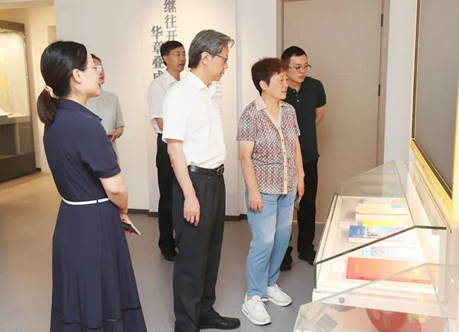 8月3日上午,南通市政协党组副书记、副主席、张謇企业家学院院长单晓鸣一行来院参观文博中心。南通大学党委副书记、副校长、我院党委书记高建林,党委委员、副院长马强陪同参观。 单晓鸣一行现场查看了一楼五星级韬奋书房,详细询问了书房内书籍种类、数量及人流量。随后参观了二楼院史馆、三楼眼科博物馆,在一帧帧图片、一个个场景、一件件实物前驻足,并深情追忆创始人张謇先生的慈善情怀。单晓鸣表示,通大附院有着深厚的历史文化积淀,通过文博中心这个融品读休闲、参观展览、学习教育等功能于一体的载体,在展示附院文化、服务社会民众、展现南通形象等方面发挥了积极作用。 院工会主席、文博中心主任倪歌等陪同参观。 (供稿:文博中心)