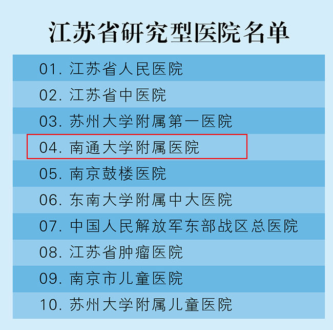 | 我院作为苏中苏北地区唯一一家医院入选江苏省研究型医院 |