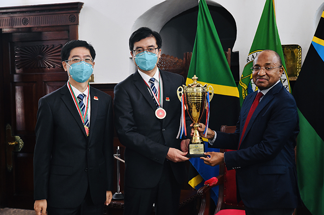 2022年9月10日,正值中秋传统佳节,坦桑尼亚桑给巴尔总统姆维尼在总统府亲切接见了第31期中国江苏援桑给巴尔医疗队,并向我院12名队员颁发奖章及纪念证书,表彰他们在当地医疗工作中的杰出表现。中国驻桑给巴尔总领馆领事张明、桑给巴尔卫生部部长纳索尔•艾哈迈德•马兹伊等一同参加了会见。 姆维尼总统感谢了医疗队在过去一年中为桑给巴尔人民提供的医疗服务,对中方提供医疗物资深表谢意,医疗队完成的以腹腔镜手术为代表的微创技术推进了桑给巴尔医疗水平的进步,医疗队积极在桑给巴尔地区医院、社区卫生所及大型集会中开展的义诊巡诊使广大桑给巴尔民众受益,姆维尼称赞医疗队开展的培训工作有利于提高桑给巴尔医生的临床技能,并高度评价了医疗队走进中小学、贫困社区开展急救培训及科普讲座的活动。 姆维尼表示,长期以来中华人民共和国政府帮助桑给巴尔加强卫生事业的发展,提供了医疗设备、药品,中国医疗队长期扎根于此,今天适逢中国传统节日中秋节,中国医生远离国内亲人,将心血和友爱赋予桑给巴尔人民。他对此特别表示感谢,并向中国人民致以节日祝贺和良好祝愿。 第31期中国江苏援桑给巴尔医疗队队长、我院消化内科主任医师瞿利帅向姆维尼总统介绍了医疗队的队员专业构成及抵达后开展的各项工作,医疗队在工作期间得到桑给巴尔政府和的大力支持,希望这些医疗物资能有助于桑给巴尔患者的临床需求。医疗队将继续同桑给巴尔卫生部门加强合作与交流,为当地人民提供优质医疗服务,传承中国援外医疗队精神,促进中桑人民友谊。 2021年9月,第31期中国江苏援桑给巴尔医疗队抵达受援国后,迄今累计为6万余名当地病患提供了医疗服务,开展各种类型手术6000余例,与桑给巴尔同行共同救治了危重病人近万名,医疗队先后开展了多种类型的高难度手术,创造了多个坦桑尼亚和桑给巴尔第一例,大大推进了以腹腔镜手术为代表的微创治疗技术在桑给巴尔的临床应用。 医疗队还积极推进中非对口合作医院项目在桑给巴尔的落实,医疗队定期前往对口医院开展手术、宣教、培训等活动,医疗队积极召开国内连线学术会议及规范化医师培训班强化当地医师的临床技能训练,多名队员受邀参加坦桑尼亚外科大会及穆希比利科学大会并发表专题演讲,同时医疗队还积极开展临床研究,发表多篇学术性论文,提升了援外医疗队在坦桑尼亚的学术影响力。 (供稿:第31期中国江苏援桑给巴尔医疗队)