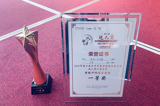 | 胃肠外科吴寒获大中华腹腔镜结直肠手术比赛江苏赛区一等奖 |