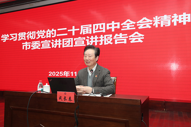 11月30日,我院举办学习贯彻党的二十届四中全会精神南通市委宣讲团宣讲报告会。江苏省委宣讲团成员、江苏长江经济带研究院院长、南通大学原党委书记成长春教授作宣讲报告。院党委副书记、院长史加海主持报告会。 报告会上,成长春教授以《奋力开创中国式现代化新局面》为题,围绕深入学习领会习近平总书记在党的二十届四中全会上的重要讲话精神和全会《建议》,从“十五五”时期在基本实现社会主义现代化进程中的重要地位,“十五五”时期经济社会发展的指导思想、遵循原则和主要目标,“十五五”时期经济社会发展的战略任务和重大举措,坚持和加强党的全面领导、凝聚起推进中国式现代化的磅礴力量等四方面,结合经济社会发展实际情况,对全会精神进行了系统阐述和深入解读。他指出,全会主题重大、内容丰富、内涵深刻,全会通过的《建议》以习近平新时代中国特色社会主义思想为指导,对未来五年发展作出顶层设计和战略擘画,是乘势而上、接续推进中国式现代化建设的又一次总动员、总部署,是指导“十五五”时期经济社会发展的纲领性文件。要更加紧密地团结在以习近平同志为核心的党中央周围,切实抓好《建议》的贯彻落实,坚定信心、奋发有为,为基本实现社会主义现代化而共同奋斗,不断开创以中国式现代化全面推进强国建设、民族复兴伟业新局面。 史加海表示,医院正处在“一院两区,东西两翼”深度融合发展的新阶段,深刻领会、准确把握、坚决贯彻好党的二十届四中全会精神,是当前和今后一个时期的重大政治任务。史加海指出,中层干部是医院事业发展的中坚力量和关键少数,中层干部的能力素质、精神状态、工作作风,直接关系到医院党委决策部署的落地见效。宣讲报告会就是要引导全院中层管理干部第一时间将思想、意志和行动统一到党中央最新精神上来,统一到医院党委的决策部署上来,进一步凝聚发展共识、增强履职本领、激发干事动能,为医院在新征程上实现更高质量、更有效率、更可持续的发展注入强劲动力。史加海要求,全院中层干部要以此为新的起点,把学习贯彻全会精神与履行岗位职责紧密结合起来,在思想政治上实现新提升,在治理能力上实现新突破,在服务发展上作出新贡献,以更加昂扬的姿态、更加务实的作风、更加过硬的本领,投身医院高质量发展的生动实践,为全面建设省内顶尖、国内一流,医教研管四核驱动的高水平研究型医院而努力奋斗。 全体院领导、院党委理论学习中心组成员、医院中层管理干部、临床首席专家、督查督办专员、研究所(中心)负责人等参加了会议。 (供稿:党委宣传部)
