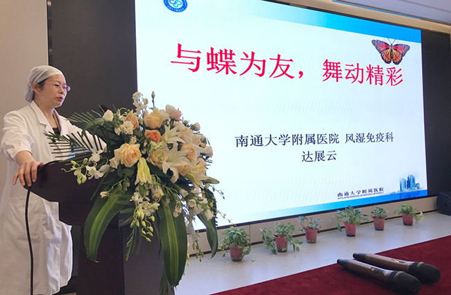 在“5.10世界狼疮日”来临之际,我院风湿免疫科联合呼吸与危重症、肾脏、皮肤及护理等多学科在新门诊楼举行了“世界狼疮日”爱心义诊及健康讲座活动,为患者答疑解惑,普及系统性红斑狼疮知识。 风湿免疫科主任达展云教授给大家作了“与蝶为友,舞动精彩”主题演讲,介绍了什么是系统性红斑狼疮,红斑狼疮患者饮食、生活中需要注意什么,系统性红斑狼疮的传统治疗以及新的靶向治疗,系统性红斑狼疮患者的生育问题等,让大家系统全面地了解了系统性红斑狼疮。 系统性红斑狼疮患者代表跟大家分享了她的战“狼”故事。随后,风湿免疫科、呼吸与危重症医学科、肾脏内科、皮肤科及护理部的专家与患者面对面进行答疑交流。在义诊现场,达展云教授等各科专家为现场红斑狼疮患者进行义诊,专家们耐心询问病史,细致查体,给出专业的治疗方案。同时,志愿者还为患者提供免费测血压、测骨密度等服务。当天虽然时间已经过了11:30,专家们还在认真地为患者义诊。 来自本市县及泰州、扬州等多个地区的50余名狼疮患友参与了本次科普及义诊活动,他们表示与专家面对面接触了心中多年的疑虑,收获满满。陈燕烽
