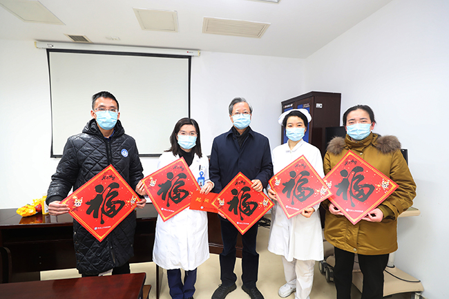 新春佳节前夕,院党委书记高建林,院党委副书记、院长施炜分别带队慰问了医院老领导、老职工代表,援疆援外专家代表、各级各类人才代表等,为他们送去新春祝福和节日问候。 在慰问老领导、老职工代表时,高建林、施炜与老同志们亲切交谈,关切询问老同志的身体状况和生活情况,向他们介绍了医院在过去一年取得的成绩,并倾听老同志们对医院事业高质量发展的意见和建议,祝福老同志们身体健康、阖家欢乐、幸福美满。在慰问各级各类人才代表时,高建林与施炜仔细询问了他们的科研工作进展、团队建设情况,高度评价了他们取得的成果,感谢他们为医院事业发展做出的贡献和付出的辛劳,并希望他们发挥带头示范作用,做好创新研究,再接再厉取得更好业绩,为医院建设发展贡献智慧和力量。 医院党委办公室、院长办公室、党委组织部等职能部门负责人陪同慰问。