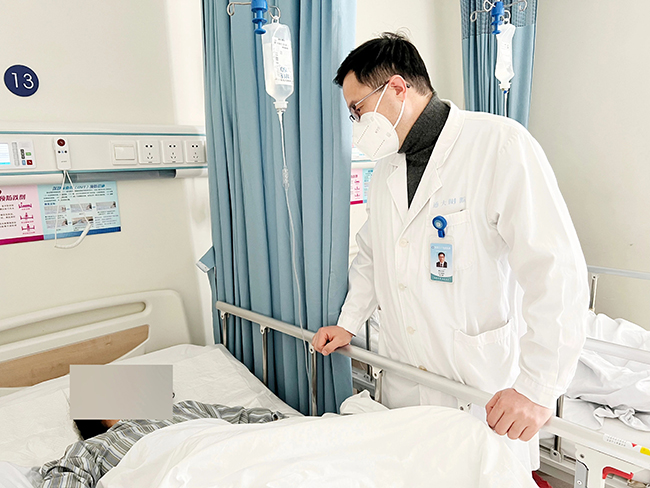 “你们的幸福是最好的春节礼物” “爸爸,我来看您了!” “奶奶,您家里人给您发了一段语音,我放给您听听!” “太感谢医护人员了,多亏了你们的用心,让我们一家团圆!”大年三十,往日安静的重症医学科病区忽然充满了欢声笑语,在一排排红色窗花和福字的映衬下,更显喜庆。为了更好地让患者与家人团聚,重症医学科的医护人员事先挨个联系了病区内的患者家属,当日能到医院的在病区内与患者团圆,无法到现场的也通过语音、视频等方式团圆。在医护人员和家属的陪伴下,这个大年三十过得别样温馨。 “病区内一直处于满员状态,二十多位患者中有一半需要进行血液净化治疗,最高龄患者103岁。虽然工作压力大,但是我们还是尽肯能地希望患者能阖家团圆,过个幸福年。”重症医学科主任赵宏胜说道。