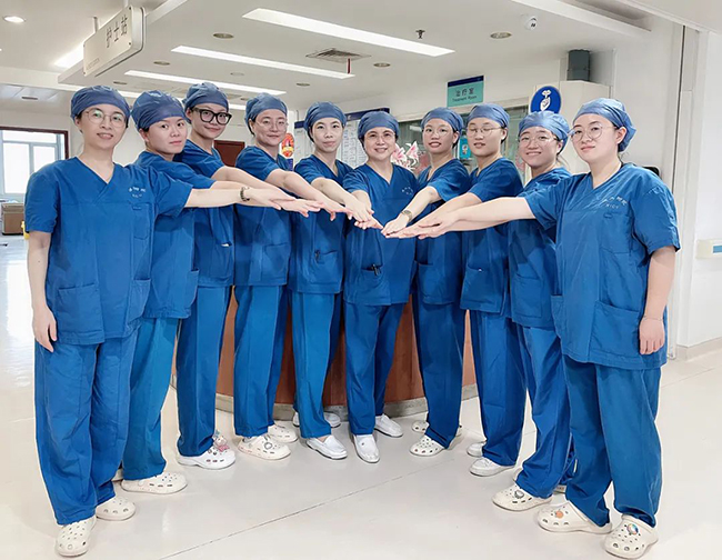 辛勤忙碌,她们是舍己为人的“白衣天使” 在通大附院呼吸与危重症医学重症监护病区,忙碌似乎已经成为了工作日常。医学界有一个共识:“三分医疗,七分护理”。对危重症患者救治来说,护理的重要性更为突出,高质量地执行主治医师的诊疗方案是护士最重要的职责。 监测仪器参数、服药、氧疗、俯卧位治疗,料理患者生活、安抚患者情绪......呼吸与危重症医学科的护士们都笑称自己是“琐事做的多”,然而正是这点滴的努力,筑成了守护生命的长城。“就拿机械通气患者俯卧位治疗来说,由于重症患者俯卧位通气需要处于深度镇静,且身上连着各种治疗仪器和各种管路,每次俯卧位治疗都需要五个医护共同配合才能完成。”施金梅说,再加上病房里老年患者较多,病情变化迅速,需要随时进行治疗和护理,医护们都是24小时在线观察。 春日花葳蕤,娇艳绽芳菲。通大附院呼吸与危重症医学重症监护病区的护理团队以温柔、善良、热情、细致,全心全意、全力以赴服务患者,用爱与关怀构筑生命的长城。“在生命面前,其他事情都不是什么大事!”施金梅坚定地说。 (供稿:王怡)