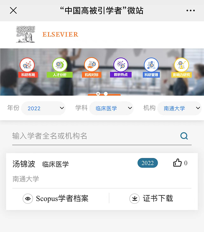 | 我院汤锦波教授连续四年入选爱思唯尔中国高被引学者榜单 |