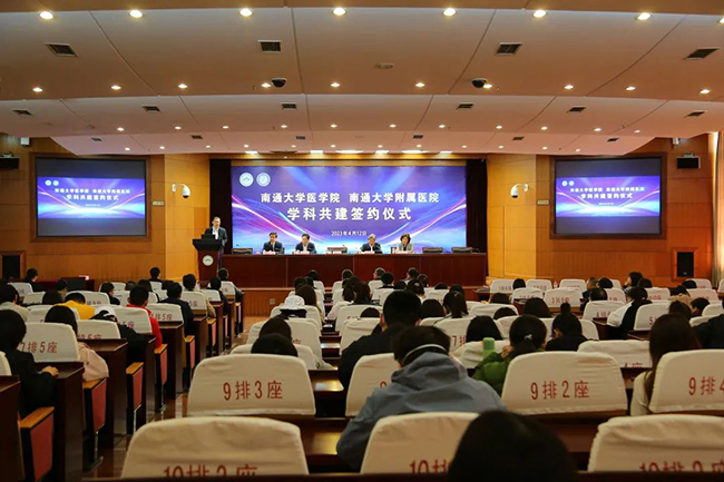 4月12日上午,我院与南通大学医学院签订学科共建协议。南通大学党委书记尚庆飞出席签约仪式并讲话。南通大学党委副书记、副校长、我院党委书记高建林主持签约仪式。院党委副书记、院长施炜与医学院党委书记史亚琴代表共建双方签订学科共建协议。院党委委员、副院长顾志峰出席签约仪式。 尚庆飞对双方的成功签约表示祝贺。他指出,医学教育是南通大学的传统和优势,是学校的一块金字招牌,也是实现特色鲜明办学目标的重要支撑点之一。医学院和附属医院作为同根同源的两家单位,要打破前后期壁垒,推动人才队伍大融合大发展;要加强内涵建设,实现优势学科更高质量发展;要贯彻新发展理念,统筹相关学科协同发展。他希望,双方以本次学科共建为契机,长效推动基础医学与临床医学深入融合发展,打造基础临床交叉融合创新的“通大品牌”,打造面向人民生命健康的学科交叉融合新高地,形成我校医学教育独有的学科文化和发展特色。 施炜表示,近年来,在南通大学党委的领导下,医学院和附属医院在科研工作以及教学改革等方面相互支持,成效显著。如今,站在全面深入合作的新起点,将进一步发挥纽带作用,推动深度融合;优化校院合作,落实深度融合;探索学科交叉,拓展深度融合;追求卓越目标,升华深度融合。 顾志峰和南通大学生殖研究院曾旭辉教授作为学科共建单位代表发言。他们表示将用好学科共建这个平台,资源共享、优势互补,争取早出成绩、快出成果、结出硕果,为学校的学科建设积累经验、为学科发展提供新模式。 此次我院生殖医学中心、病理科、医学影像科分别与医学院生殖研究院、病理教研室、解剖学教研室进行共建。我院相关职能部门负责人、学科共建团队成员及研究生代表等参加了签约仪式。 (供稿:学科建设办公室)