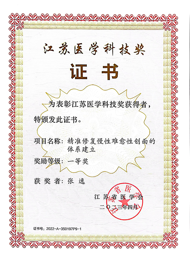 近日,2022年度江苏医学科技奖揭晓,其中一等奖10项,我院烧伤整形科主任张逸教授团队作为第一完成单位完成的“精准修复慢性难愈性创面的体系建立”荣获一等奖。 本课题组历时十余年,开展了一系列临床和基础研究,创新了难愈性创面早期全程预防和精准外科修复理念,提出了难愈性创面愈合的新机制,探索出一整套难愈性创面综合治疗技术体系,实现从既往单纯的“创面关闭”向预防、重建结构和功能的“类生理愈合”的完美康复转变,减少远期复发率,提高愈合质量,推动了难愈性创面精准修复的学科发展,起到技术引领和示范作用。 课题组负责人张逸教授目前担任中国医师协会创面修复专业委员会候任主任委员、中国康复医学会烧伤治疗与康复学专业委员会副主任委员、中国医师协会烧伤外科医师分会副会长、中华医学会烧伤外科分会常务委员、江苏省医学会整形烧伤外科分会主任委员。张逸教授团队先后获华夏医学科技奖二等奖1项、中华医学科技奖三等奖1项、江苏省医学新技术引进奖一等奖1项、二等奖2项、江苏省科技进步二等奖1项、南通市科技进步奖3项,国家专利22项,参编 “十三五”国家重点图书出版规划项目、国家卫健委中国创面修复科标准化建设教材等烧伤外科、创面修复科专著15部,发表学术论文200余篇;参编烧伤整形与创面修复全国专家共识指南30余部。 (供稿:烧伤整形科)