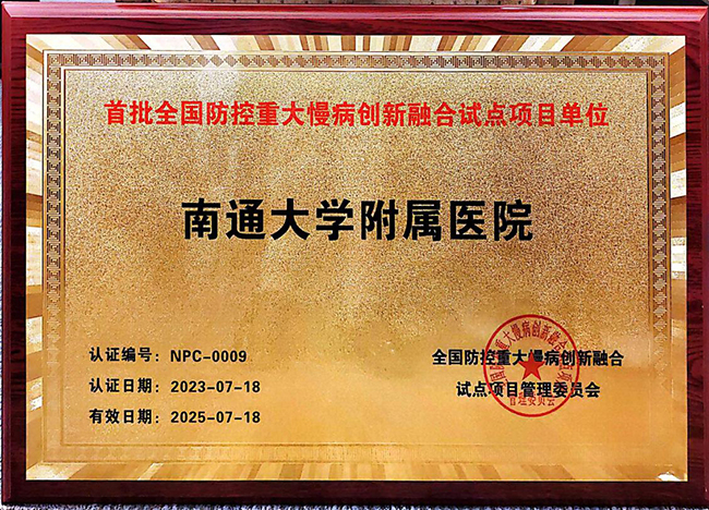 | 我院获得首批全国防控重大慢病创新融合试点项目单位 |