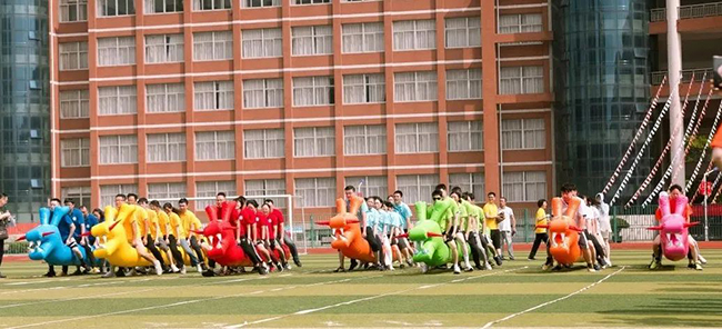 本届游艺运动会的比赛项目包括“协力共进”“拾贝入篓”“摸石头过河”“跳大绳”“旱地龙舟”“定点投篮”“4*100接力赛”等,将传统运动的竞技项目和趣味游戏相结合,活动现场精彩不断,欢乐连连。
