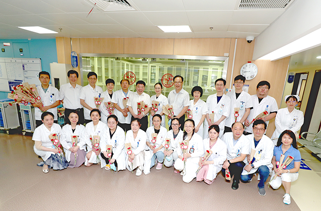 8月18日上午,江苏省医师协会会长陈卫昌一行来院慰问医师代表。南通大学副校长、我院党委书记、院长施炜,副院长赵建美参加了慰问活动。 慰问活动中,陈卫昌一行先后走访了急诊抢救室、消化内科、呼吸与危重症医学科和眼科,向奋战在一线的医护人员致以节日的问候与祝福,并送上鲜花。每到一处,陈卫昌与坚守岗位的医师们亲切交谈,感谢他们为通大附院高质量发展和保护千万江海百姓健康所付出的努力与辛劳,并希望他们继续用实际行动践行“敬佑生命、救死扶伤、甘于奉献、大爱无疆”的崇高职业精神,做好医疗战线的“螺丝钉”。 临床科室医师代表、相关职能部门负责人参加了慰问活动。 (供稿:吴昱)