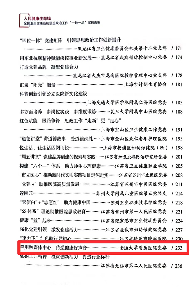 | 我院案例入选全国卫生健康系统思想政治工作“一地一品”案例选编 |