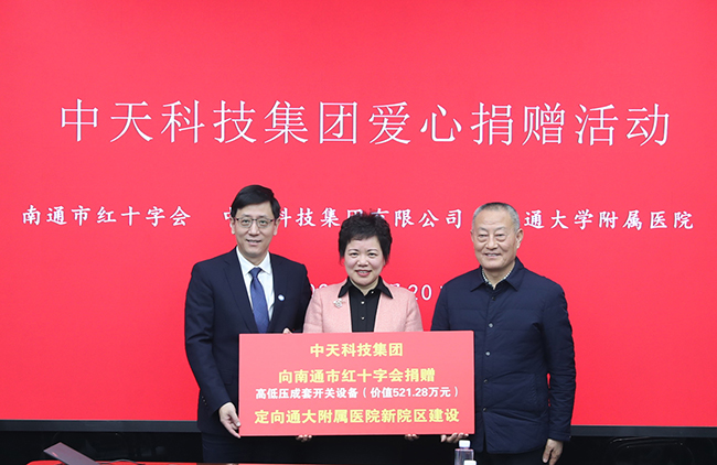 1月20日上午,中天科技集团爱心捐赠活动在我院举行。此次捐赠由南通市红十字会牵头,中天科技集团捐赠价值521万的高低压成套开关设备助力我院东院区建设。南通市人大外事民宗侨台委员会主任、市红十字会党组书记、常务副会长钮曦,中天科技集团党委书记、董事长薛济萍,南通大学党委常委、副校长、我院党委书记施炜等出席捐赠活动并讲话。捐赠活动由钮曦主持。 施炜代表医院向南通市红十字会的关心支持、中天科技集团的爱心捐赠表示衷心感谢,并详细介绍了医院历史、近年来高质量发展成果、东院区建设及未来发展目标与规划。他表示,中天科技集团作为南通地区最大的民营企业,向全社会诠释了张謇企业家精神在当代的传承之道,此次捐赠不仅是对我院医疗事业的肯定与支持,对我院医护人员的关心与鼓励,更是对七百万江海百姓健康福祉的关怀与厚爱。我院将不断加强自身内涵建设,持续提升服务能力水平,不断践行和弘扬“大医精诚,以宏慈善”的院训精神,把中天科技集团的善举反哺广大百姓,为打造共建共治共享的南通美好家园贡献通大附院的力量。 薛济萍对我院长期以来为中天科技集团员工提供的优质医疗保障、健康体检、医学科普等服务表示衷心感谢。他简要介绍了中天科技集团的概况,特别是过去一年取得的效益及今年的奋战目标。他表示,中天科技一直以来在办好企业的同时,坚持传承弘扬张謇企业家精神,自觉履行社会责任,与通大附院护佑苏中苏北人民群众生命健康的初心使命一脉相承。中天科技将持续关注家乡以通大附院为龙头代表的重点医疗机构基础设施、技术装备等方面的优化升级,以更多的社会责任担当,为人民群众的美好生活添砖加瓦。 钮曦在主持时表示,中天科技、通大附院分别是行业龙头翘楚、省高水平建设医院,都有着很扎实的科研基础,在关键难题联合攻关、创新成果转化应用、数字智慧医疗建设等方面,合作前景广阔、大有可为。市红十字会将充分发挥平台与纽带的功能作用,为更多的企业深化了解医院、加强院企合作,带动我市医疗卫生事业高质量发展贡献红十字会的力量。 捐赠活动中,施炜代表医院接受中天科技集团的捐赠;南通市红十字会党组成员、会长助理朱建新代表市红十字会向中天科技集团颁发捐赠证书;我院党委常务副书记马卫东向中天科技集团颁发荣誉证书。 捐赠活动后,领导嘉宾一行参观了我院文博中心,对医院创始人张謇先生慈善为民的初心表达由衷的敬佩,对医院百十余年来在医疗、教学、科研、管理、文化等方面取得的成果表示赞许。 南通市红十字会、中天科技集团相关部门负责人、在院院领导及相关职能部门负责人等参加了捐赠仪式。 (图:邵勇林 文:居靖雯)