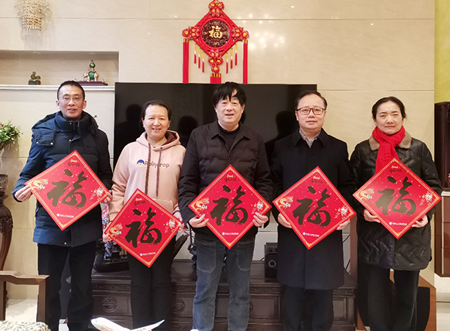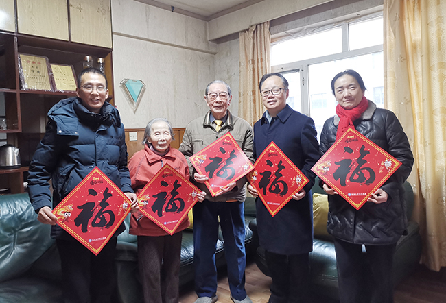 施炜、史加海向老同志们送上鲜花、祝福和慰问金并合影留念,祝福老同志们身体健康、龙行龘龘、阖家欢乐。