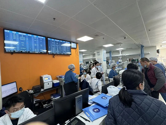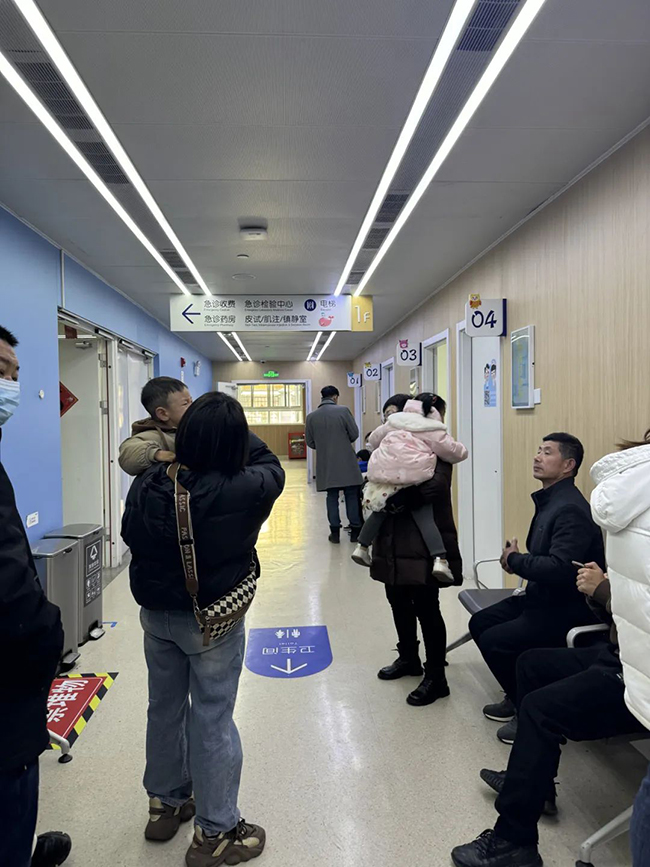 儿科门急诊 儿科抢救室护士左伟华告诉小编,春节假期的病人数量远超平时,其中大部分是肺炎患者,还有不少出现惊厥的儿童。更为严重的是,有一名小患者心律失常,短时间内就发作了三四次,令医务人员倍感担忧。“节假日值班对我们来说已经是家常便饭,早就习惯了。”左伟华坦言,尽管工作强度大,但她和同事们依然坚守岗位,全力以赴救治每一位病患。 为了应对春节假期的患者高峰,儿科门诊派驻了五名医生。然而,即便如此,依旧有许多患者在等待看诊。周辉主任表示,“上午所有儿科的号已经挂满,到下午三点左右我已经看了65个病人,系统里还有十几个病人在等待。”他解释说,儿科病人主要以呼吸道疾病为主,如发热、咳嗽等,还有一些消化道的症状比如呕吐、腹胀、腹泻等。 周主任还就近期常见的儿科疾病给出了一些建议。他提醒家长们要注意孩子的饮食卫生和保暖工作,避免感冒等呼吸道疾病的发生。如果家属有感冒的情况要注意隔离,春节到外地走亲访友期间要注意儿童水土不服的可能。同时,对于已经患病的孩子,家长要及时带孩子到医院就诊,以免延误病情。