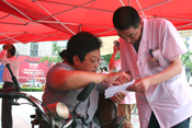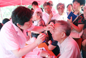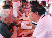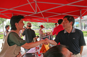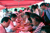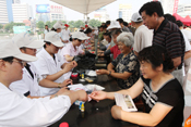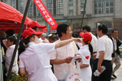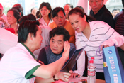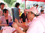 6月20日上午,我院百名党员专家齐聚环西文化广场举行大义诊,以实际行动践行科学发展观。当天,36个专科的128名具有高级职称的专家吸引了数千名群众前来就诊咨询。义诊现场骄阳似火,但更热的却是就诊百姓的心头。中心广场的西面,大幅的专家榜映红了波光粼粼的濠河水,专家榜的两侧赫然一副对联:大医精诚,当德艺双馨的健康卫士;以宏慈善,办人民满意的江海名院。正是在这样一种为医之道和办院理念的指引下,通大附院才如此受到江海百姓的由衷爱戴。