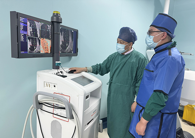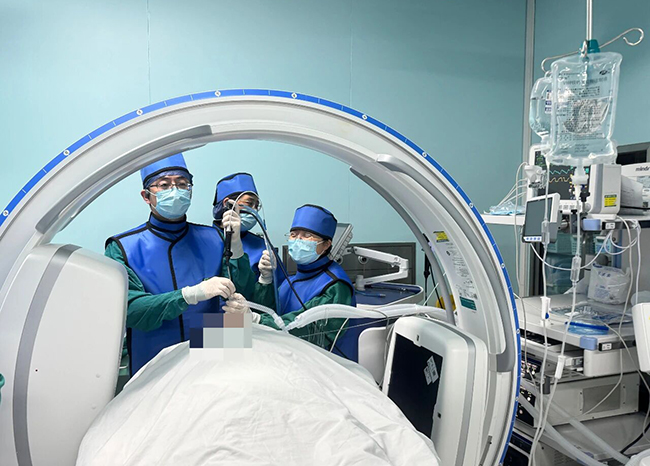 面对这一难题,呼吸与危重症医学科呼吸介入团队没有退缩。经全面评估,团队为李老伯定制了一套“精准打击”方案:基于电磁导航气管镜联合CBCT、径向超声的经支气管镜肺外周病灶活检+冷冻消融术,既精准清除病灶,又最大程度保护他脆弱的肺功能。