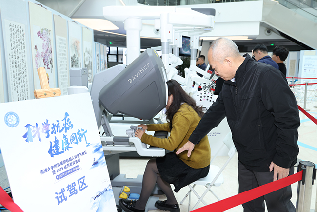 10月22日上午,“科学抗癌 健康同行”手术机器人科普开放日活动在我院东院区启动。院党委副书记、院长、胸外科主任医师史加海教授出席启动仪式并致辞。活动由院党委委员、副院长陆玉华教授主持。 史加海表示,内窥镜手术系统作为当前全球领先的微创外科手术系统,集高清晰度3D视野、可转腕器械、直觉式操作与震颤过滤等多项创新技术。2019年,我院率先引进南通地区首台全球最新第四代手术机器人;2025年,又迎来了第二台。从“一台”到“双机”,截至目前,3700余名患者享受到安全、优质的微创手术服务,正是通大附院人践行“大医精诚 以宏慈善”院训的生动写照。 科普讲座环节,妇产科主任、主任医师张玉泉教授,泌尿外科主任医师蔡波,胸外科主治医师杨学超,胃肠外科副主任医师倪庆锋围绕手术机器人在微创手术中的应用,结合典型病例展开深入浅出的讲解,既普及了专业知识,又搭建起医患沟通的桥梁,有效提升了民众的疾病防治意识。 “手术机器人由医生控制台、患者手术平台和影像处理系统三部分组成。”“医生控制台分为头部感应与视野区、手部操作区及脚部控制区,大家看我怎么操作……”机器人试驾环节,在工作人员的指导下,现场市民逐一体验3D高清手术视野,亲身感受“端坐操作台,化身‘三头六臂’外科医生”的奇妙体验。“原来这就是手术机器人!”“多个机械臂同时操作也太精准了!”活动现场惊叹声此起彼伏,现代医疗科技的魅力,吸引了众多市民、患者及医务人员驻足参与。 以人为本、科技向善。随着手术机器人的成熟运用,不仅有效降低了医生的工作强度,更显著提升了手术质量,进一步拓展了微创手术适应症范围。这一技术的落地与升级,为我院打造"省内顶尖、国内一流、医教研管四核驱动的高水平研究型医院"注入强劲动力,更让千万江海百姓在家门口就能享受到全球前沿的医疗科技服务。 本次手术机器人体验活动截止时间为10月24日,地址为我院东院区门诊大厅中庭,欢迎大家来试驾体验。 (文图:居靖雯)